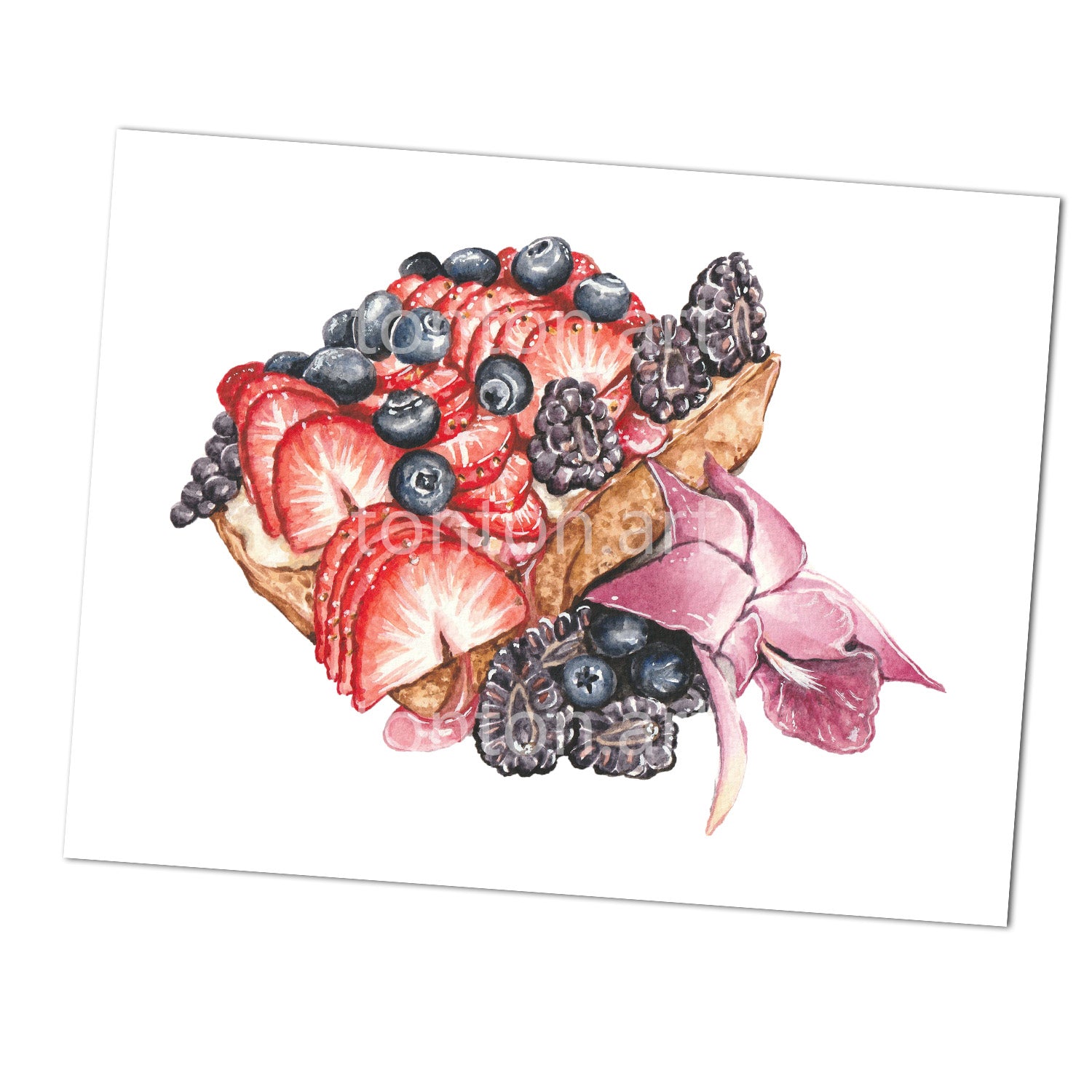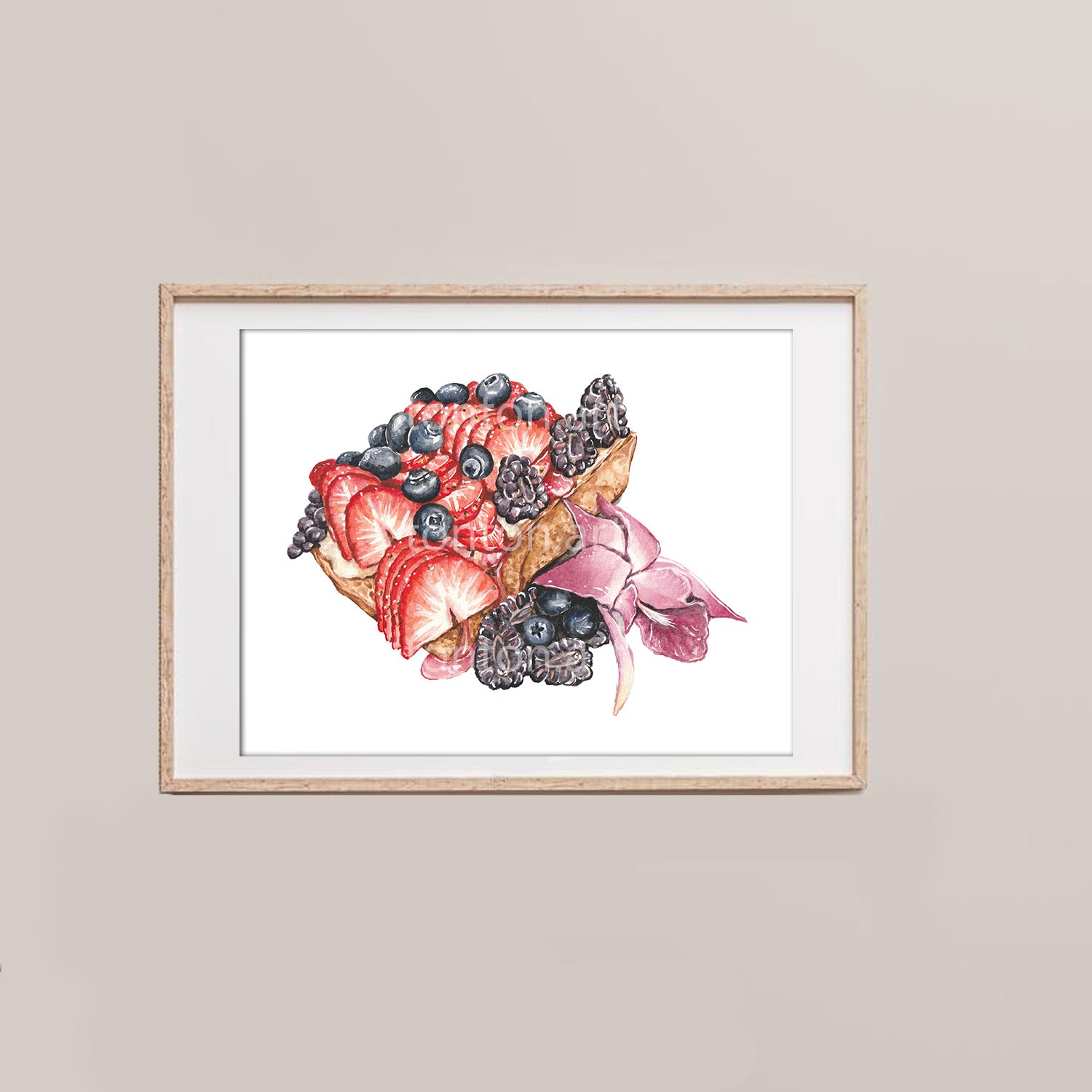 An art print, featuring my painting of mixed berry over ricotta and toast