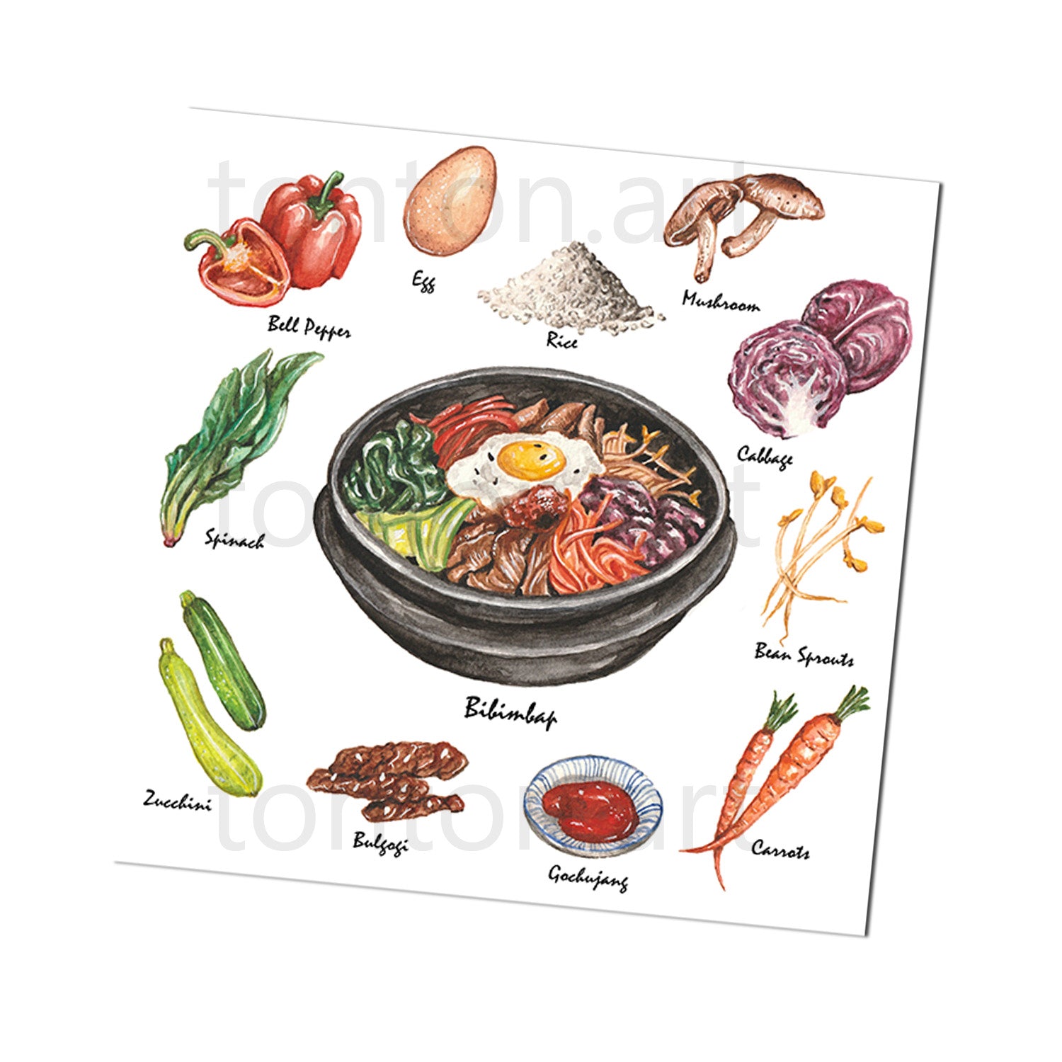 Part of my recipe project, featuring my painting of BiBimBap and its ingredients!
