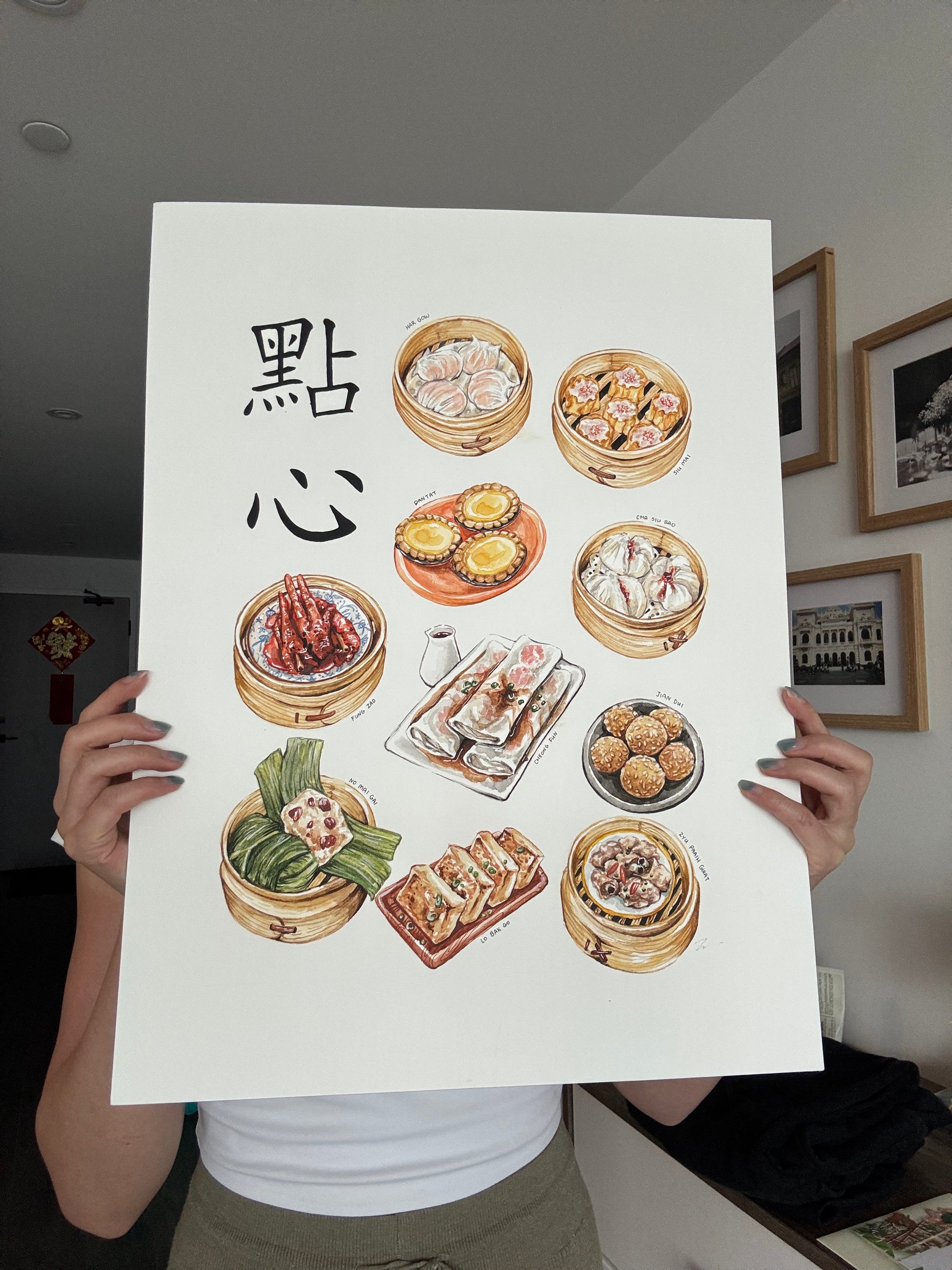 Original watercolor painting featuring a collection of Dim Sum Dishes!