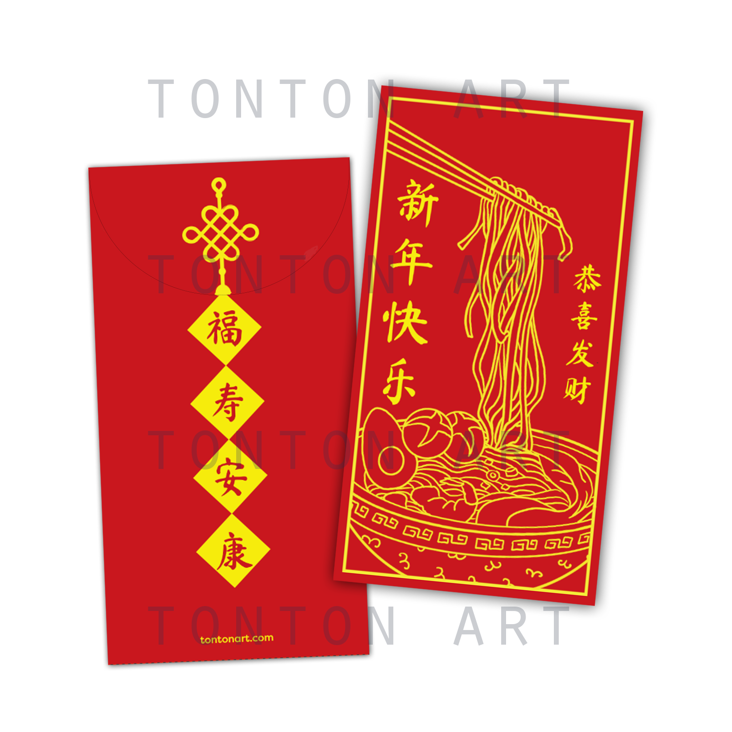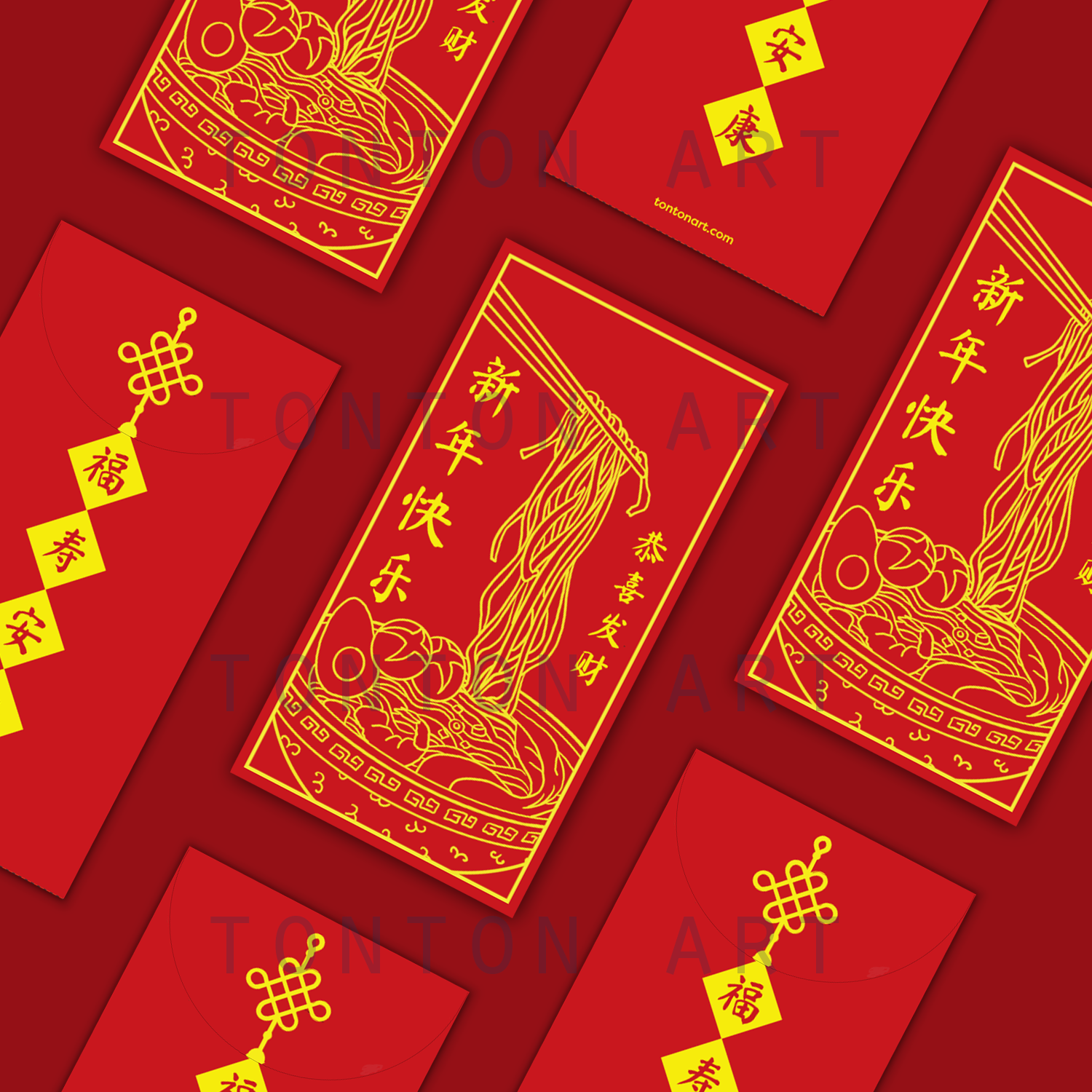 Our first red pocket design featuring a bowl of delicious longevity noodles. The hong bao includes Lunar New Year idioms;