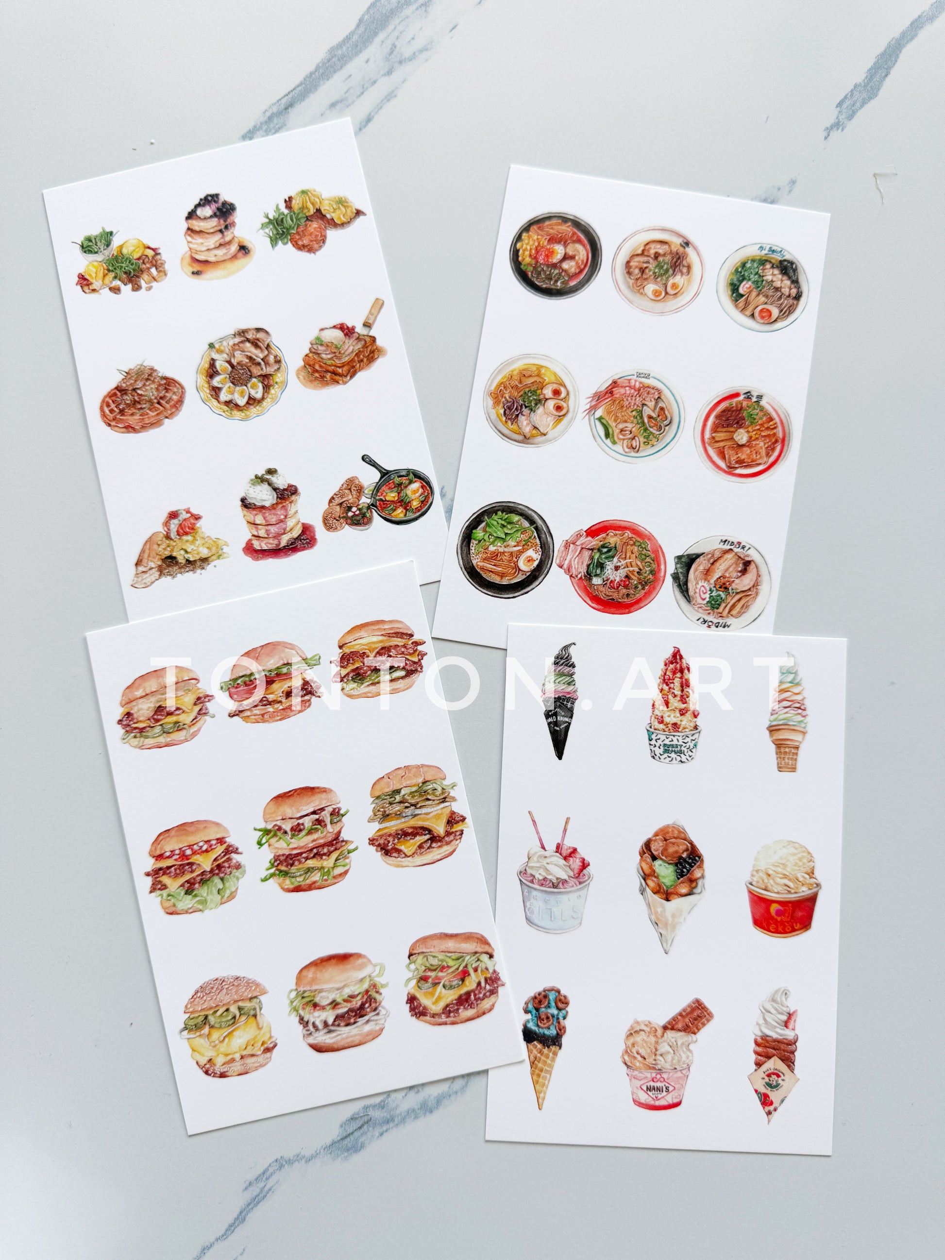 Comes with 4 post cards, featuring burgers, brunch, ice cream and ramen!