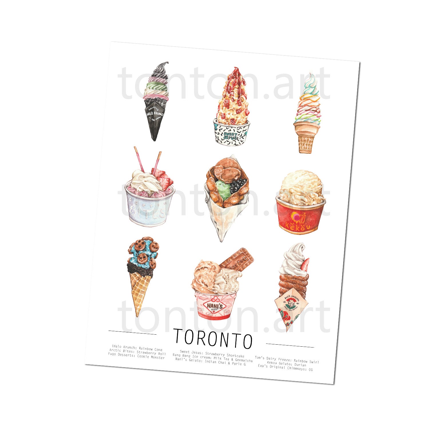 Art print featuring a collection of my favorite Ice Cream shops in Toronto!