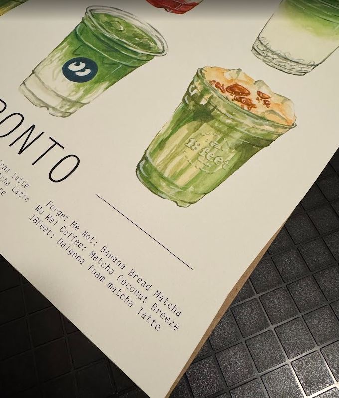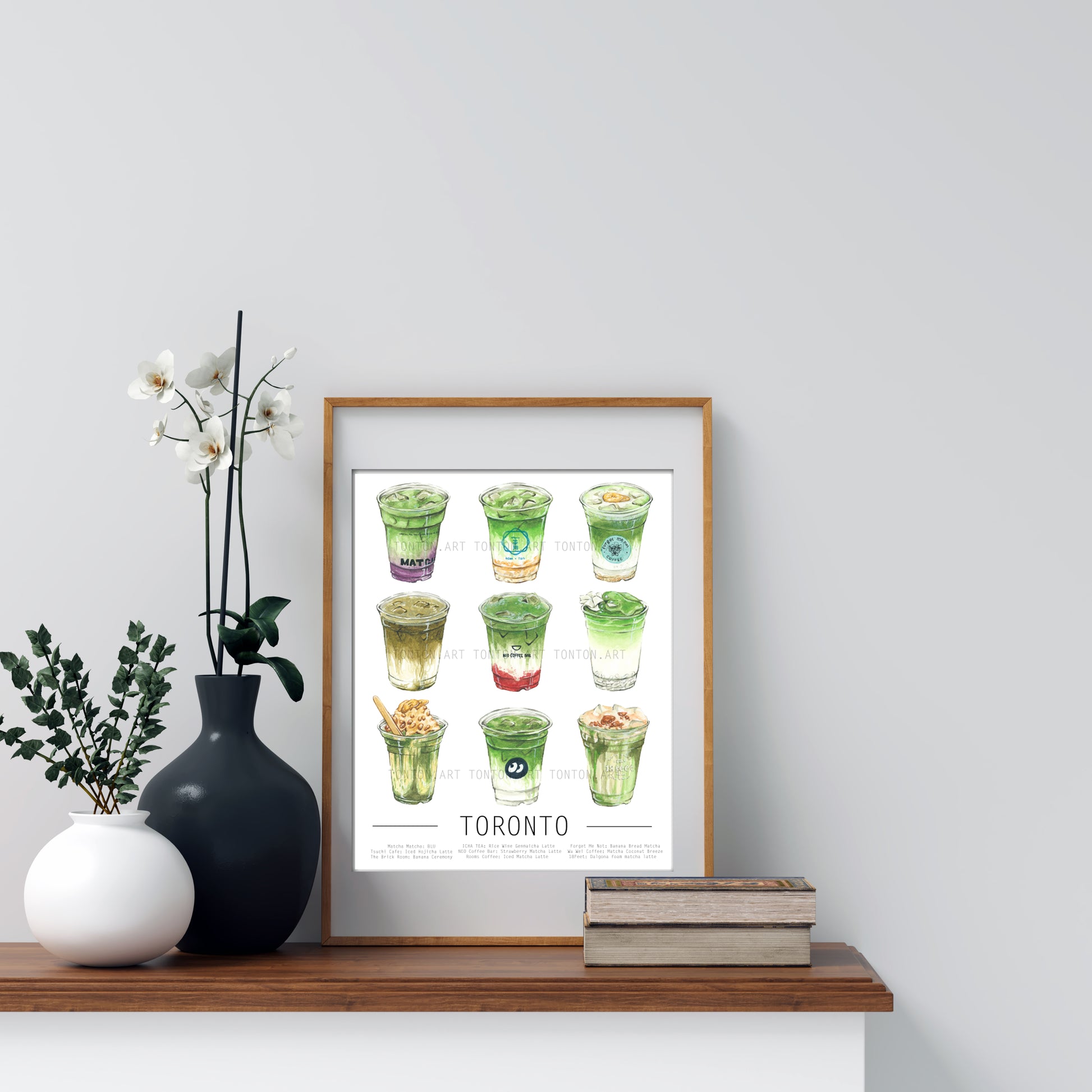 Art print featuring a collection of my favorite Matcha Cafe shops in Toronto!